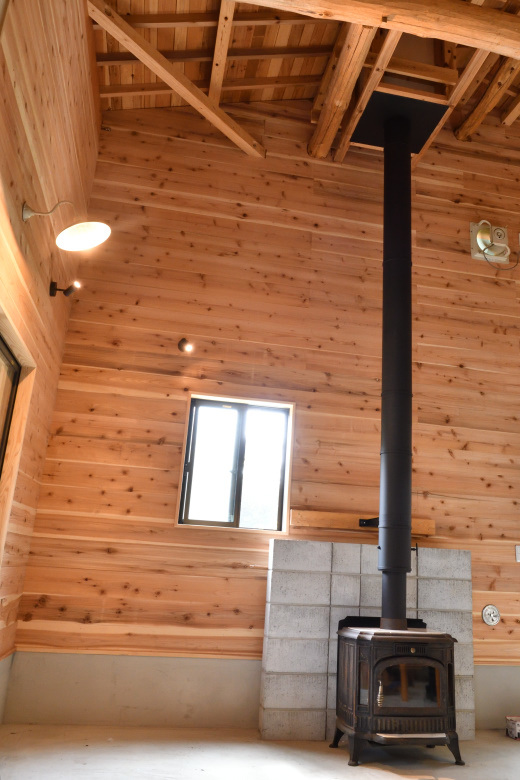 煙突と、薪ストーブが設置されて室内の景色が一変した。