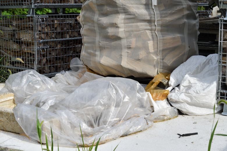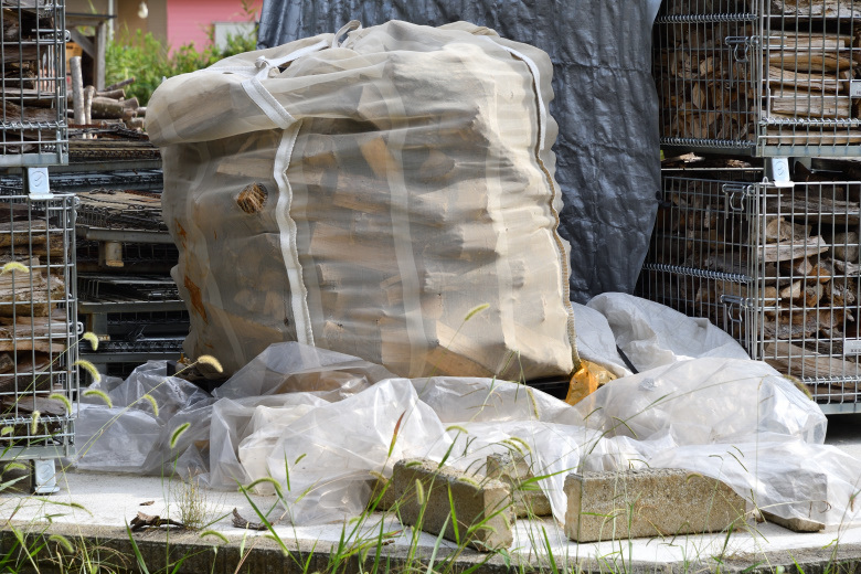 薪用のフレコンバッグ(ウッドバッグ)のカバーが外れた程度の被害