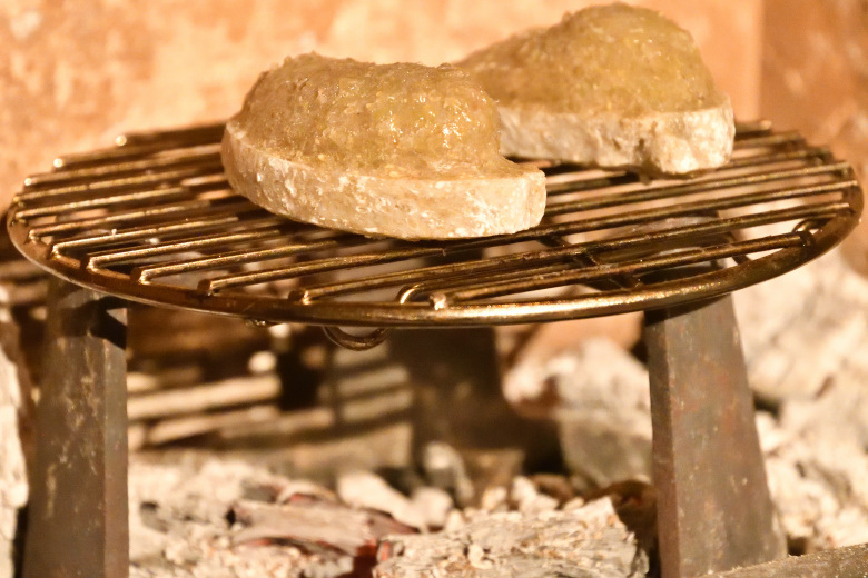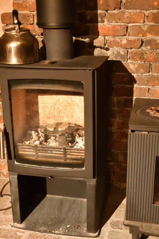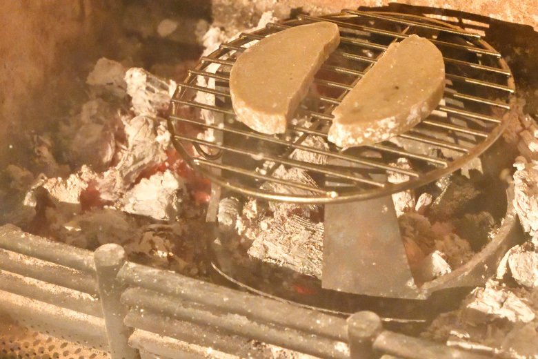 せっかく薪ストーブつながりの食材なので、薪ストーブの炉内でも定番の焼き方で食べてみた。