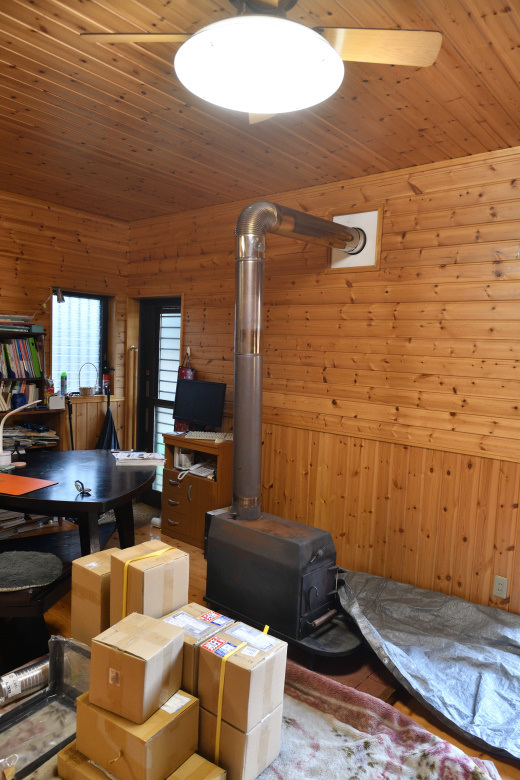シングル煙突壁面出しを、二重断熱煙突屋根抜きに変更した案件で、既存の貫通穴に採光用の断熱サッシを入れた。通常はケイカル板や金属板で単純に蓋をしてしまうケースが多いけど、今回はお客様の要望で、薪ストーブや煙突工事とは、別途の追加工事を行った。これが、かわはら薪ストーブ本舗の2018年最後の仕事だった。