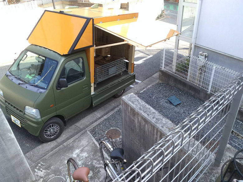近場への配達では、機動力の高い軽トラックが大活躍している。メッシュパレットボックスごとフォークリフトで荷台に載せることができるので、大幅な時間短縮になっている。