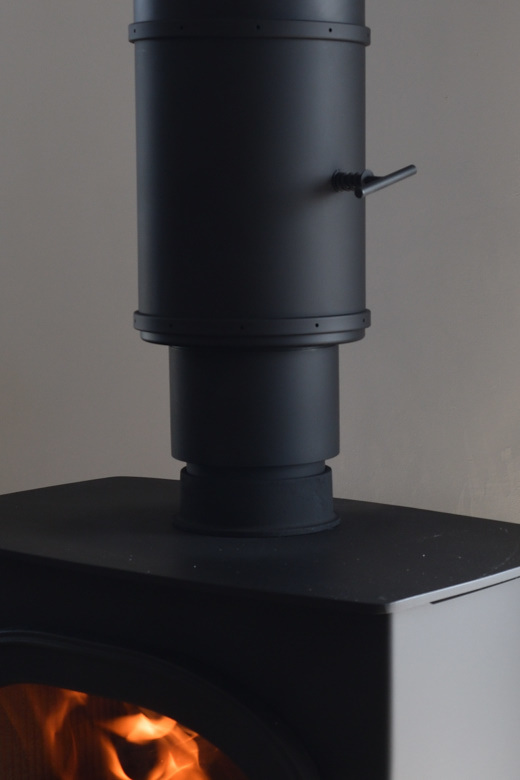 ローコストのダンパーは3000円くらいだけど消耗品と割り切る必要もある。ダメージが出たら数年ごとに交換する必要が出てくるるので、手間や時間がけっこうかかる。一方、しっかりした造りの二重断熱煙突に組み込まれたものは30,000円くらいだけど、交換の必要はない。安いものを使い捨てで交換し続けるか、しっかりしたものを長く使うかは考え方次第だ。結局のところのトータルコストは変わらないが、手間と作業時間を考えたら最初からしっかりとしたものを選択しておく方が合理的だと思った。