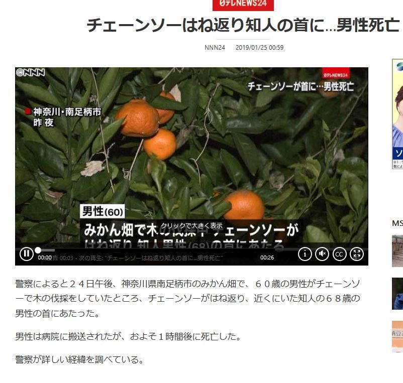 このニュースの場合は刃が枝に当たって反動で刃が飛んでくるキックバックしだと思われるが、こういう事故が起きるリスクもある。