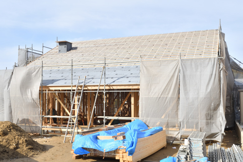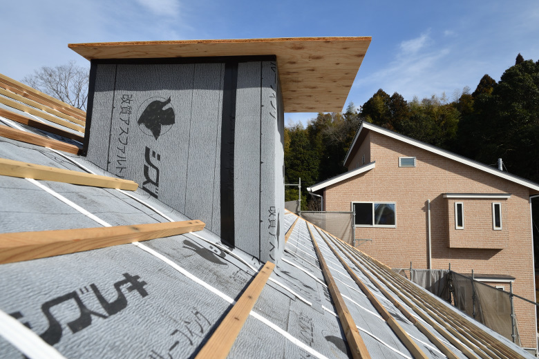 かわはら薪ストーブ本舗では、可能な限り、上棟して野地板とルーフィングの施工が終わって、チムニーの形ができたタイミングで見に行っている。万一、誤解やミスがあっても、この段階であれば、余裕で修正可能だからだ。