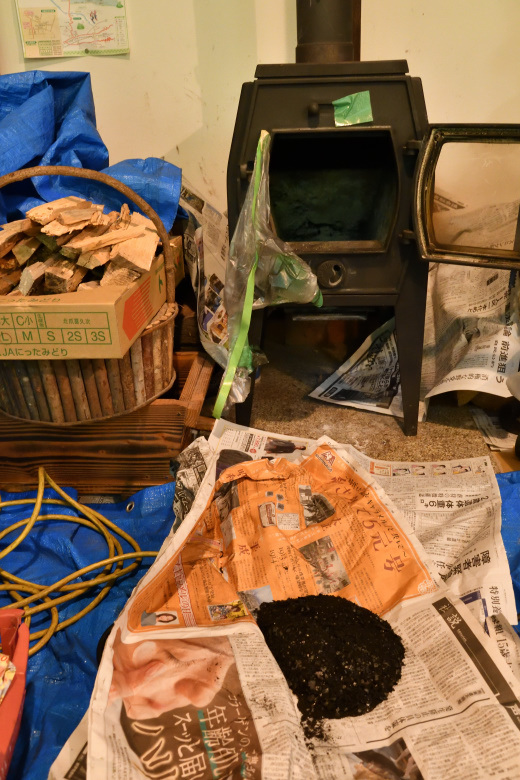 フレーク状の危険な煤、タールの付着だったので、使い方、焚き方の指導をしてきた