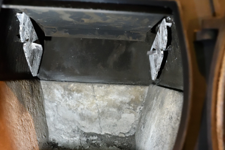 バッフル板が崩壊してパーツごと炉底に落ちて灰に埋もれていたので、とりあえず発掘してパーツを元の位置に戻した