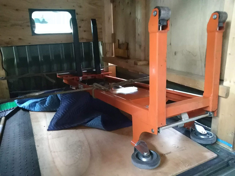 そんな中、ヤフオクを眺めていたら、良さそうなものを見つけた。多くの薪ストーブの重さに耐えられる250kgの最大荷重、そして前高さが1900ミリ以下、何より本体の重量が80キロ以下と軽トラの荷台へハンドリフトそのものを積み下ろしもできるのが決め手となった。新品でも、どうせ、取りに行かなくてはならないならば、中古で安い方がメリットあると判断して、入札してみた。終了間際に他の人も入札してきて、競り合いになって若干高くはなったけど、許容範囲だった。
