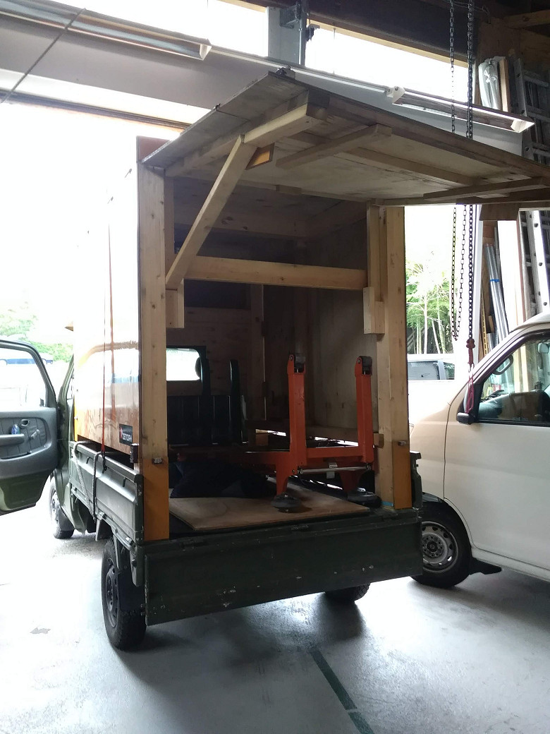 京都まで取りに行って、軽トラの荷台に寝かせて積み込む