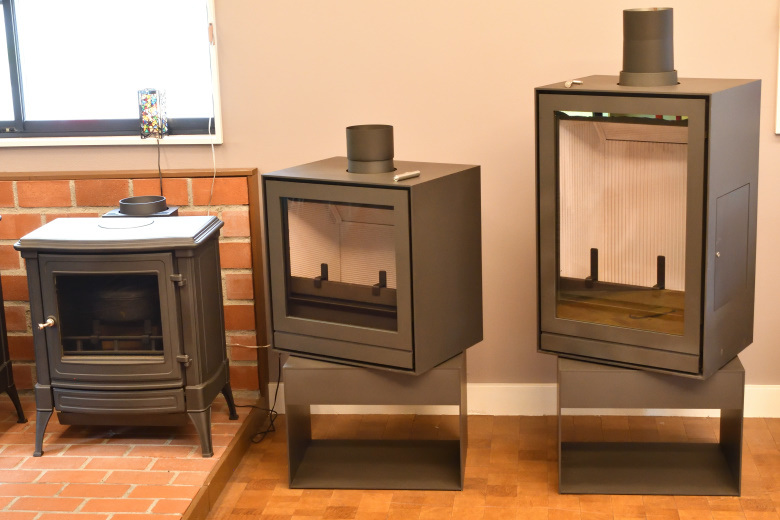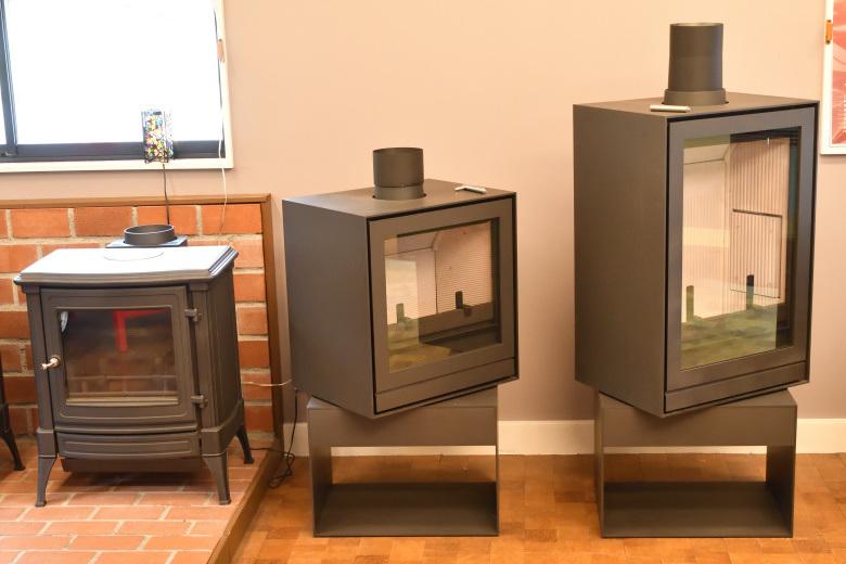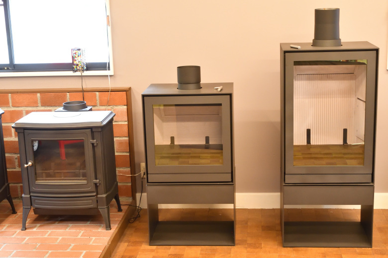 かわはら薪ストーブ本舗の北軽井沢店のショールームには、ネスターマーチンのTQ33とTQH33の二台のユニークな薪ストーブを展示している。