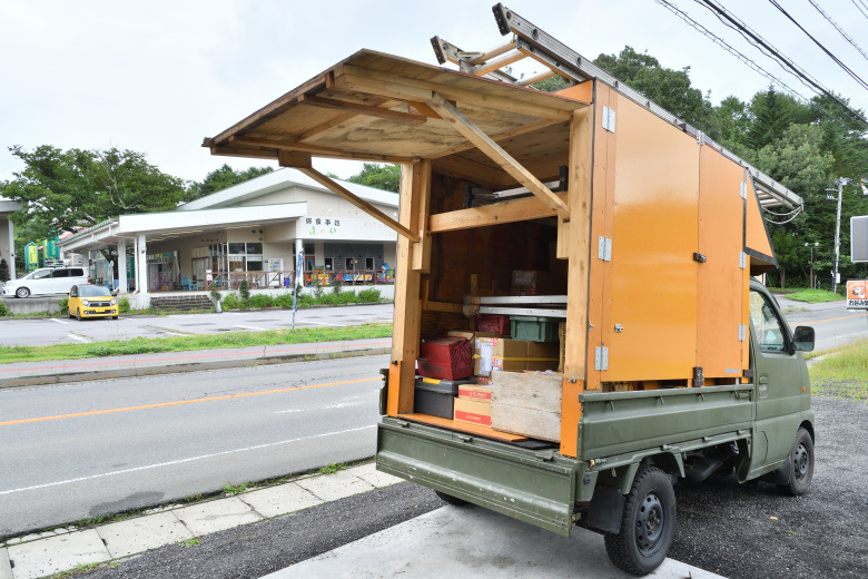 工事まで時間が開く時には、入荷した薪ストーブを一度、店内のバックヤードに保管しておくけど、今回は工事がすぐに控えているので、そのまま工事車両の軽トラックに積んでしまう。動線の無駄がなく合理的だ。