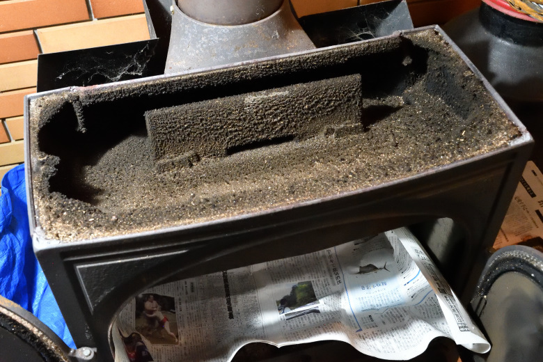 梅雨入り前のシーズンのオフのメンテの場合には、きっちり煤を落として、防錆油を塗って夏の湿気から炉内を守る処理を施すが、今それをやっても意味がない。