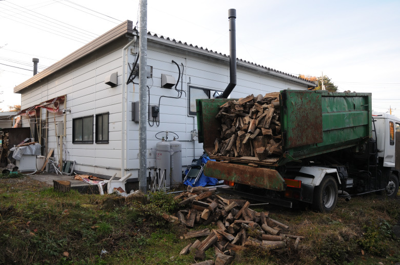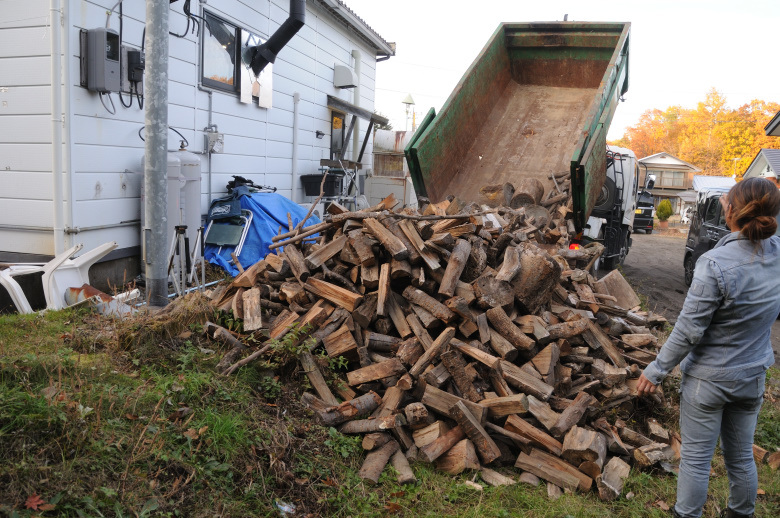 先日、販売用の薪を愛媛から持ってきてもらったのに引き続き、店舗の暖房用の薪を千葉から持ってきてもらった。