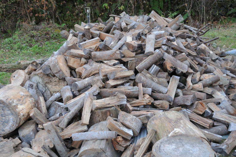 普通の人にとってはゴミの山にしか見えないかもしれないけど、薪ストーブユーザーが見たら極上の乾燥薪だということが、色や質感からも伝わってくるだろう。