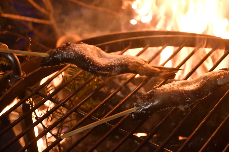 GW期間中の、昼間のオープニングイベントの際に、店頭に設置した本格的なピザ窯で焼いたピザをお客様に振舞ったが、夜はスタッフで、そのまま火を入れ続けたピザ窯を使って焼肉を作った。