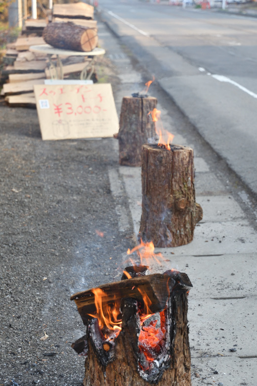 道路沿いでスゥェーデントーチを3つ焚いた