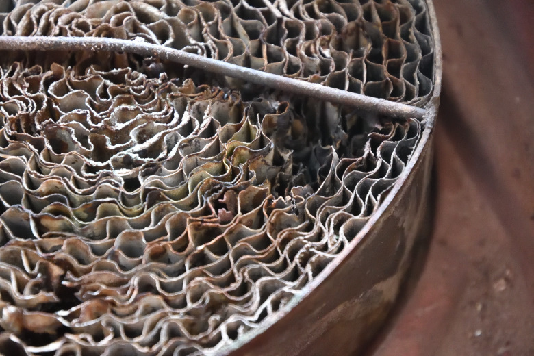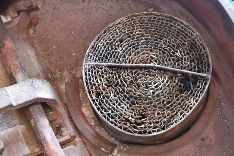 今回メンテナンスしたフェデラルコンベクションヒーターの金属製の触媒が崩壊寸前だった。ケースが変形して網も砕けかけていた。この状態だと今シーズンで終了で、あと1シーズンは持たないだろう。