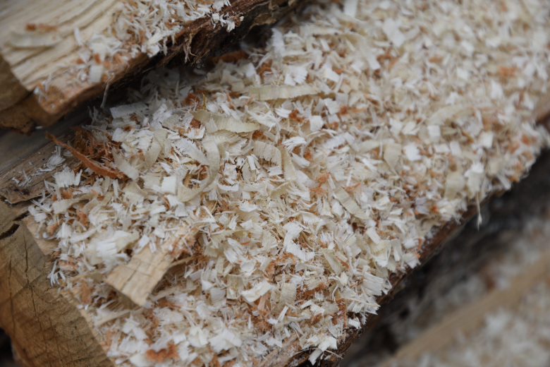 正しく目立てができれば、このようにカンナ屑のような「正方形」「長方形」の木くずが出る