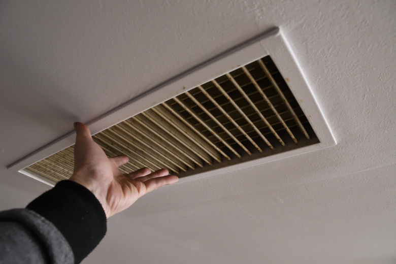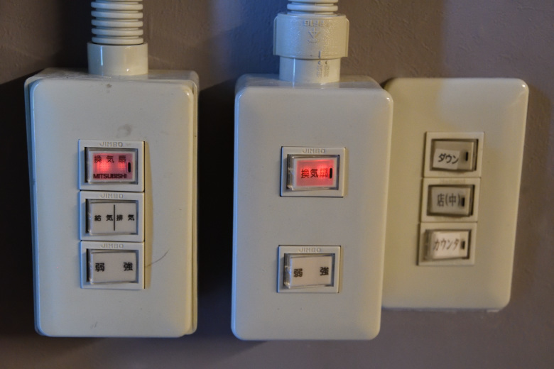 それを解消するために、バックヤードとショールームの天井をつなぐダクトに換気扇を挿入して、任意の部屋の空気を、別室に送るシステムを構築してみた。
