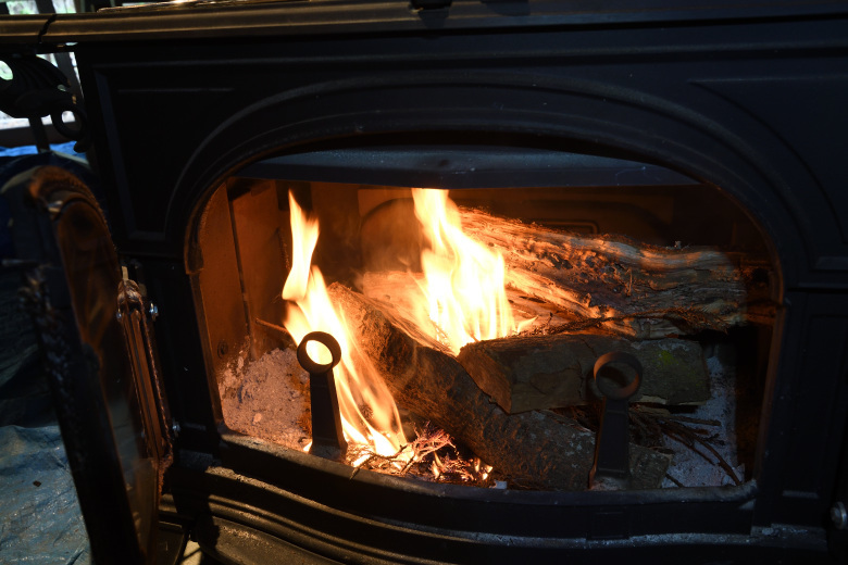 工事の資材や工具や梱包材などをすべて車に積み込んで撤収準備ができた頃に、薪を追加投入して、さらに炉内温度を上げていく。