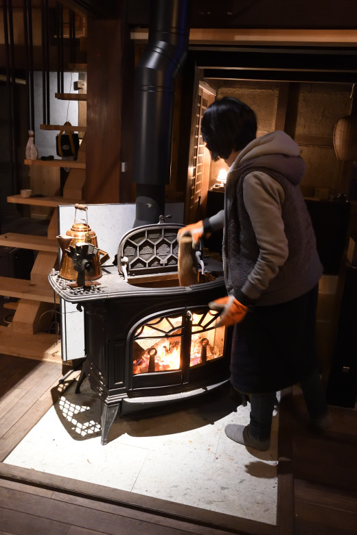 薪の追加方法、ダンパーの操作方法、温度管理の方法まで、時間をかけて正しい使い方をレクチャーした