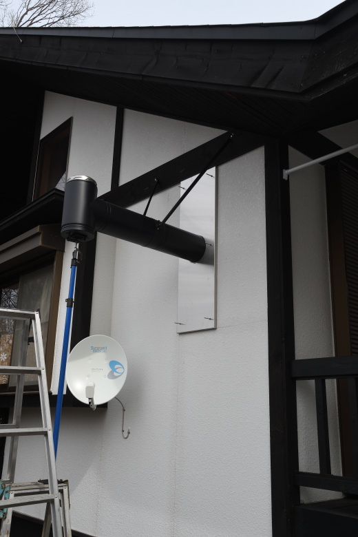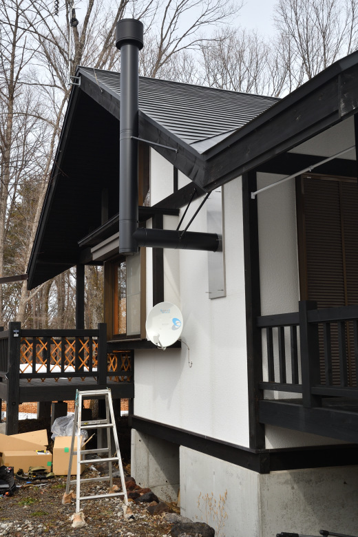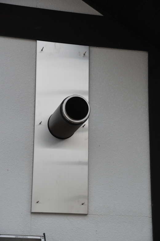 いくら低予算の案件でも、煙突は妥協しないのが、かわはら薪ストーブ本舗の方針だ。今回も、国産の新宮商行の二重断熱煙突を採用した。屋外の風雨に直接さらされる環境では、煙突の接合部(コネクター)から雨水が内部に侵入するリスクのない国産の煙突を使用するのがベストだからだ。