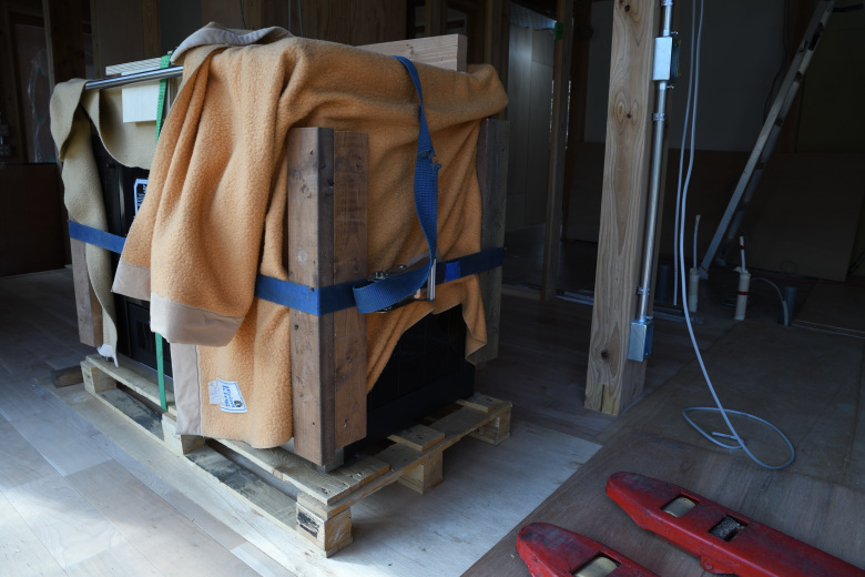 今回は、工務店からの下請け案件で、薪ストーブ本体も工務店支給だ。搬入も工務店なので「どうやって搬入しようか」と悩まずに済んだ。