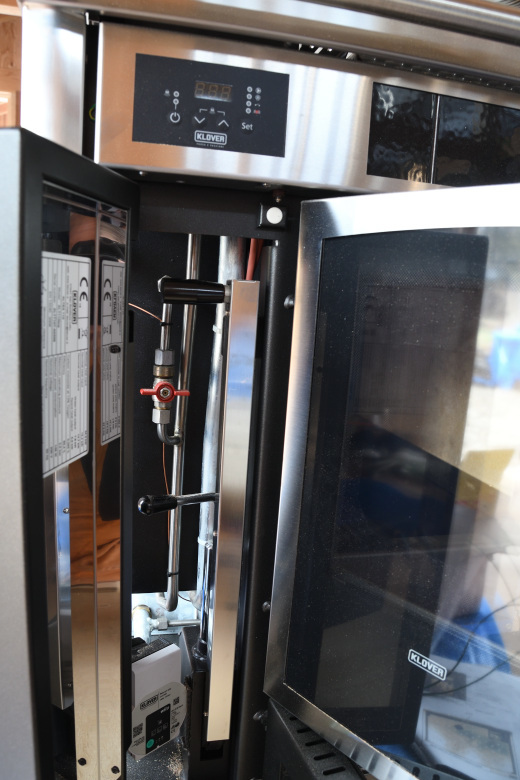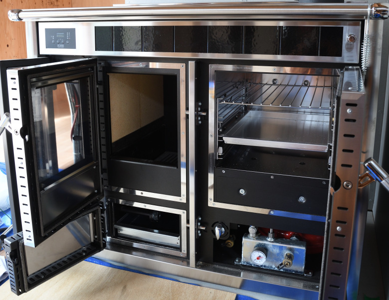 今回、工務店から振られてきた煙突工事の仕事では、滅多に見ないユニークな薪ストーブを見ることができた。イタリア製のKLOVERというメーカーのオーブン室がついているだけでなく、給湯システムもついているボイラー付きの、盛沢山の製品だ。