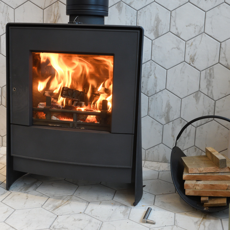 この機種の外装パーツは鋳物なのだけど、見事なRを含んでいてデザイン性に優れている。それがスタイリッシュな炉台、炉壁の上に映えて、とても良い雰囲気だ。