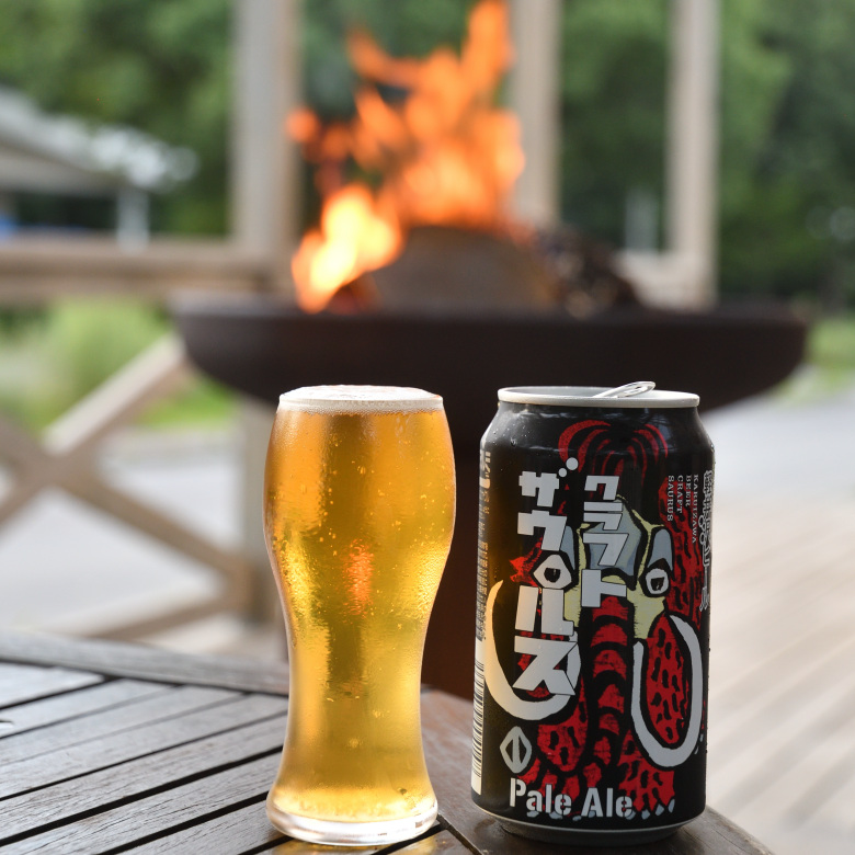 軽井沢ならではのクラフトビールを飲みながら焚きつけ