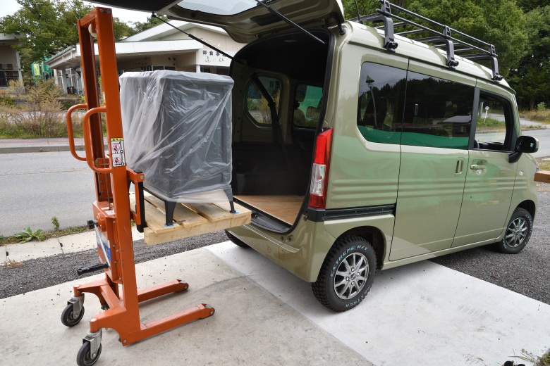 先日荷受けした薪ストーブを、N-VANに積み込んだ。