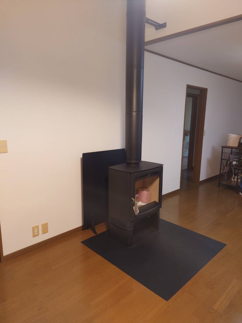 直接接続したのは直径が100で済むからです。間接接続の場合は直径150なので、今回の設置状況だと、薪ストーブ背面にその直径が確保できないからです。