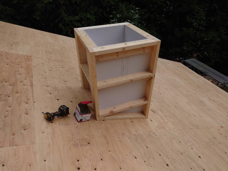 既存屋根の上に野地板を乗せて、チムニーを作成