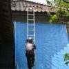 薪ストーブを平行移動して、毛布で養生