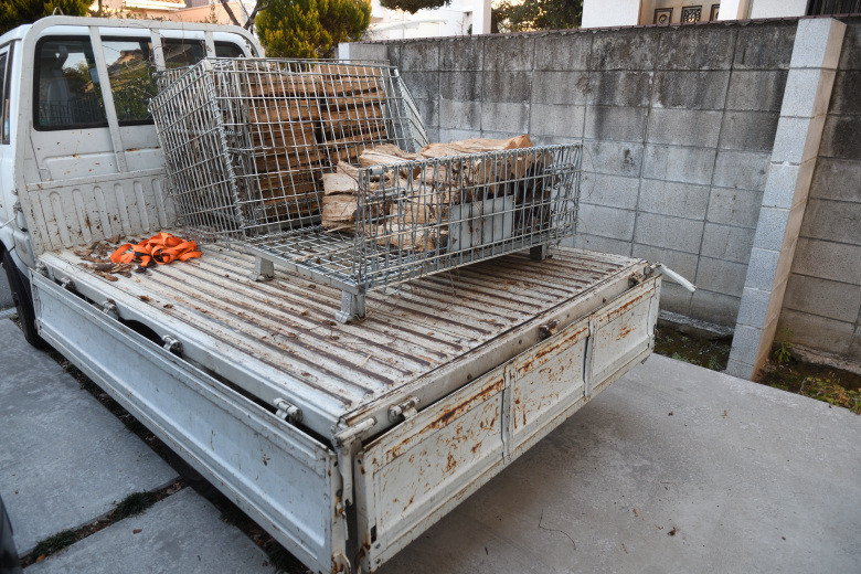 今回は1立米の注文だったので、0.5立米のメッシュパレットコンテナを2つ、平ボディのトラックに積んで、積み込み時間を短縮した。
