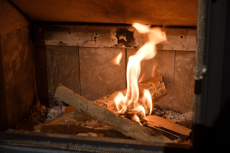薪ストーブに火入れ