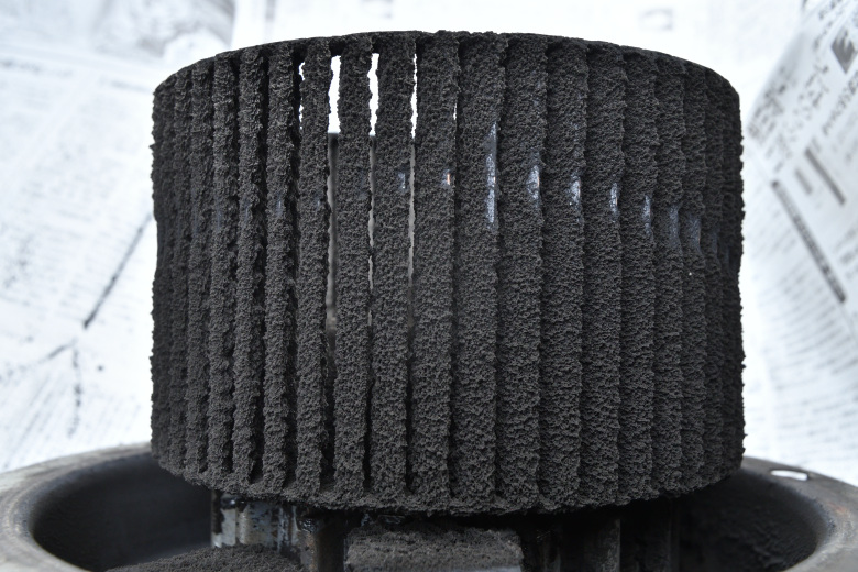 細かいファンなので、煤が詰まると閉塞して煙の抜けが悪くなってきてしまう。そのため2ケ月に一度程度の定期的な煙突掃除が必要になる。8月はお盆と重なるので、お盆前に作業できるようにスケジュールしてもらった。