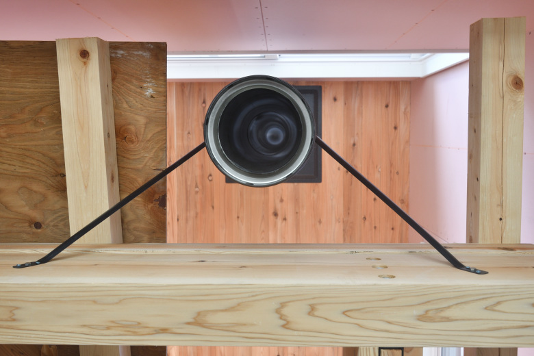 煙突の末端を固定して、続きは薪ストーブ設置工事の時に