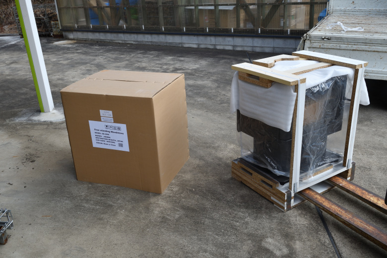 入荷した薪ストーブはの積み込み前に、梱包を解いて内部を確認した。
