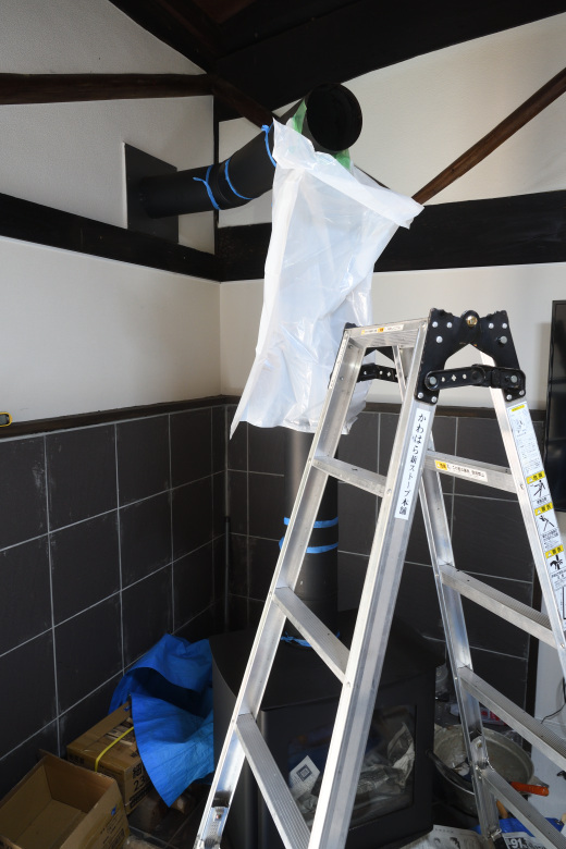 作業の際は、煤が飛び散らないように慎重に進めた。