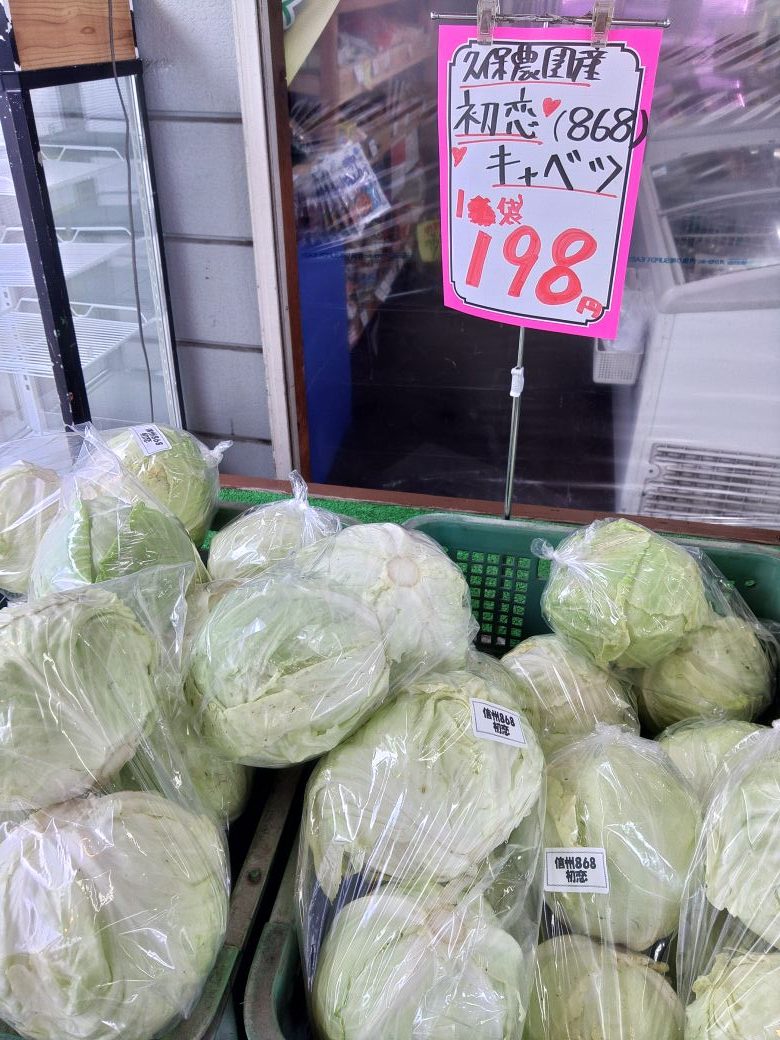 久保農園に行ったら処分品のキャベツが2玉で198円だった。これはだいぶ痛みかけていて、速攻食べないとすぐにダメになるやつだけど、この値段ならば「まあいいか」という感じだ。