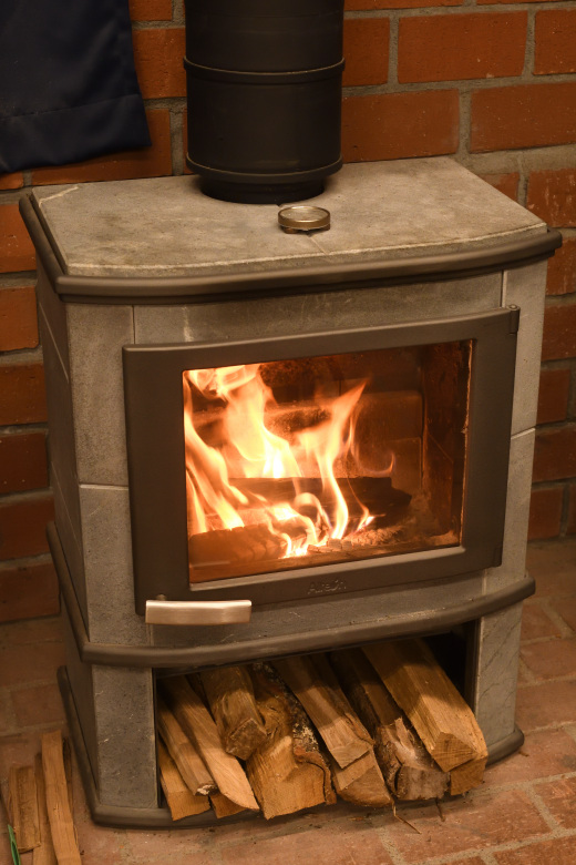 そんなに寒くない時期だけど、お客様が来店するので、薪ストーブに火入れした。