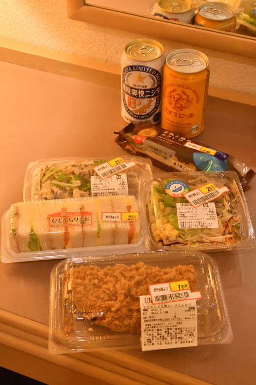 近くのホテルに前泊となった。到着が夕方だったので、割引がぼちぼちはじまる時間帯で、少しだけ安くお惣菜をゲットできた。多分、もう少し遅い時間帯であれば、割引率もアップするのだろうけど、待っていられない。サクっと買った。ラッキーなことに新潟の地ビールがあったので、そちらも迷わずゲット。