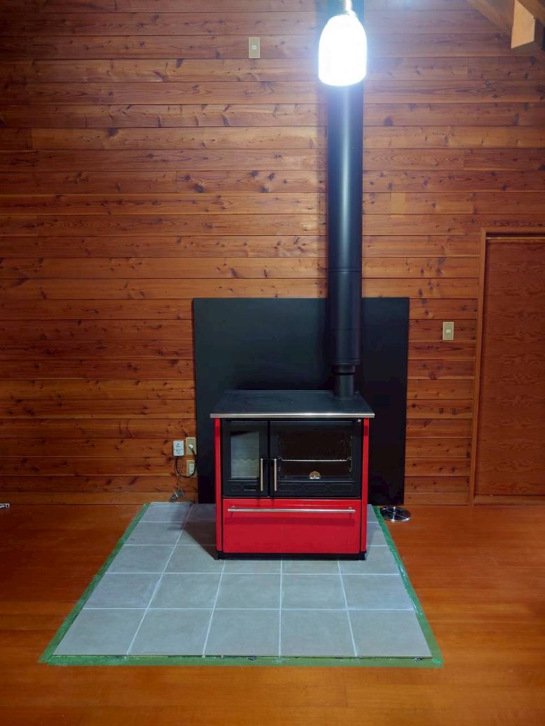 1.薪ストーブ左側のコンセントが隠れても良いから遮熱板を炉台からはみ出さないようにずらして欲しい