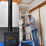 紅葉の中、煙突工事と薪ストーブ設置工事