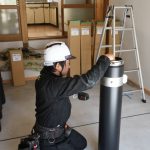チムニーの内部に煙突固定金具を取り付けたら、次はその煙突固定金具に煙突を取り付ける。 現場によってチムニーと小屋裏の寸法が違うが、合計...