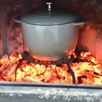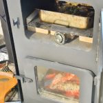一般的な薪ストーブだと炉内調理するためには、料理ができる熾火の状態を作ってやる必要がある。料理の前にある程度焚いて、炉内に熾火がたっぷりある...