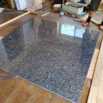 巨大な一枚モノの石の炉台が搬入完了