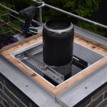 チムニーの中に煙突を取り付ける場合、事前に煙突固定用の金具を所定の位置に打ち付ける必要がある。チムニーの芯と、煙突の芯の位置が合うように調整...