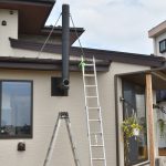 茨城県つくば市での真夏の煙突工事だった。 平屋の下屋部分が薪ストーブ設置位置だったので、設計時点で屋根にチムニーを作成して屋根抜きする...