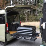 普段、良く使っている一辺が800ミリの角トップであれば、N-VANの荷台に余裕で積み込める。薪ストーブ本体の設置なしで、煙突工事だけの時には...
